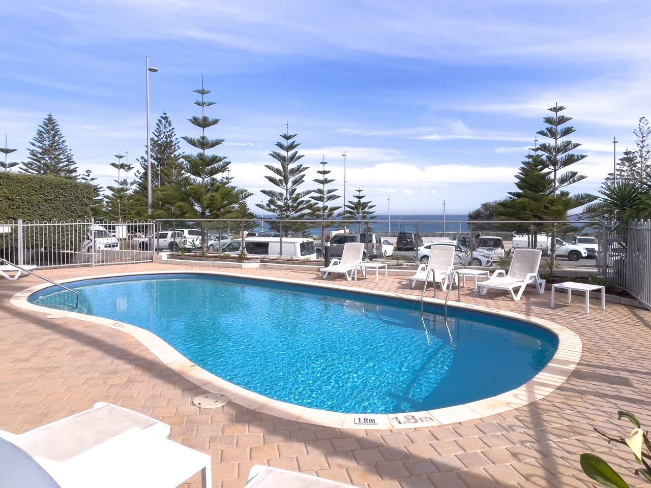 Complimentary parking is available for one vehicle. The apartment complex offers three visitor spaces, and there is lots of other parking, both paid and free in the Scarborough area. Bus stops are conveniently located just a 5-minute walk away at the end of Scarborough Beach Rd.