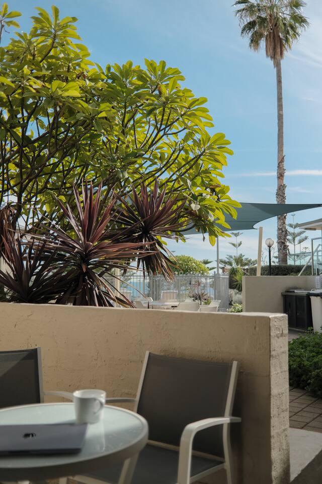 Welcome to your perfect coastal escape! Our light-filled ground floor apartment is ideally located within the renowned Seashells complex, just steps from Scarborough Beach. Enjoy a comfortable and relaxed stay with all the amenities you need right at your fingertips. 🛏️ Sleeping Arrangements • Bedroom 1: Queen Bed with ceiling fan • Bedroom 2: Two Single Beds with portable fan 🏡 Apartment Features • Smart TV • Reverse-cycle air conditioner (heating & cooling) • Washing machine, dryer, ironing board & iron • Fully equipped kitchen with cookware and glassware (including wine glasses) • Coffee machine with a complimentary selection of coffee pods & teabags • Dining area for four • Private outdoor seating area • Bathroom with shower and a separate private toilet • Vacuum cleaner & hair dryer 🏊♀️ Facilities • Front ocean-facing pool • Newly renovated heated pool at the back of the complex • Outdoor BBQ area 🚗 Parking • Free secure parking included for one medium or small-sized car Enjoy the ultimate beachfront lifestyle with cafés, restaurants, and shops just moments away. Whether you’re here to relax, explore, or surf – you’re in the perfect spot!
